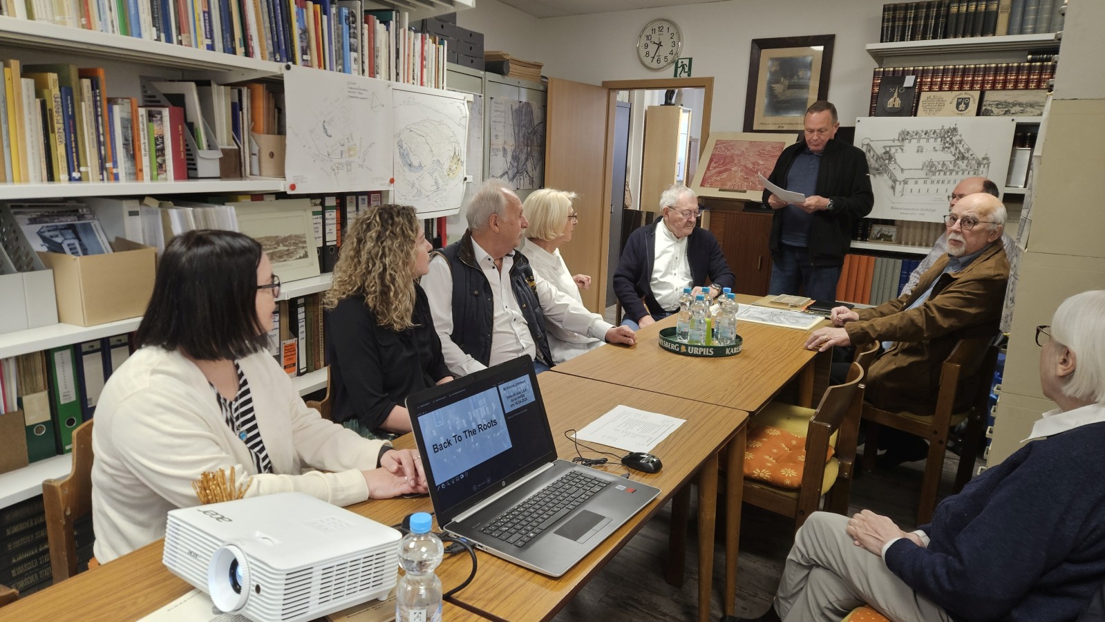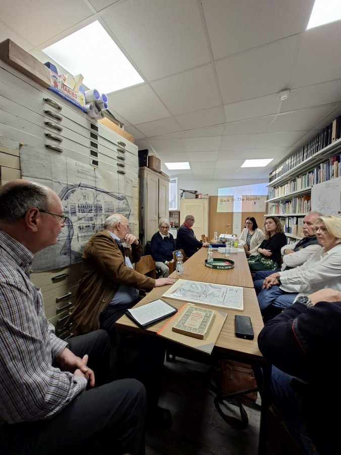 Der Besuch begann um 09.30 Uhr in der Geschäftsstelle. Auf Seiten des Vereins waren Brigitte Schubert, Friedrich Decker, Wolfgang Thomas, Jürgen Prams, Friedrich Strohm und Michael Brendel anwesend. Als Überraschungsgäste waren die Eheleute Dorothee und Ingo Schmelzer eingeladen. Ingo Schmelzer ist mit Frau Johnson über gemeinsame Vorfahren aus dem 17. Jahrhundert verwandt.
