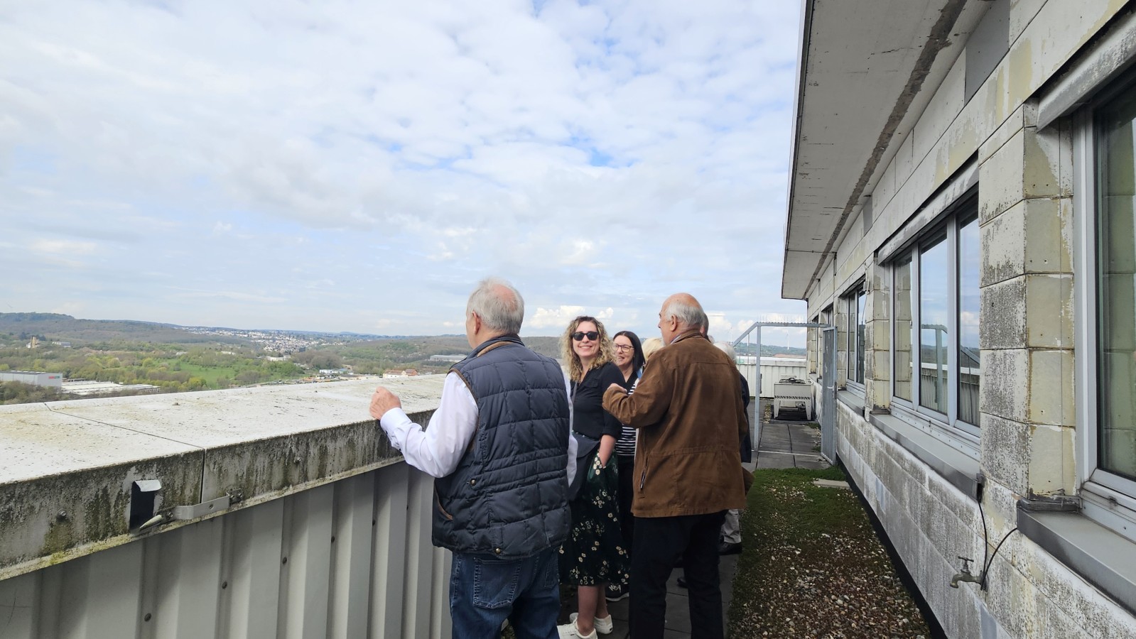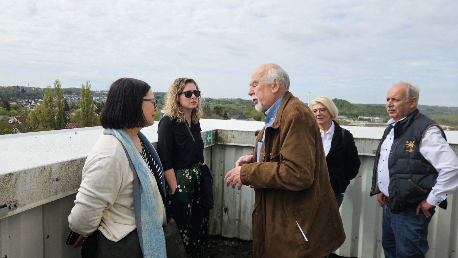 Die nächste Station fand auf dem Dach des Rathauses statt, wo Friedrich Decker das bisher Erfahrene mit einem „Blick ins Gelände“ vertiefen konnte. Insbesondere die Lage der Schlösser und des Eisenwerks standen im Vordergrund.