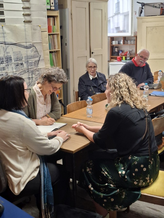 Am Nachmittag fand auf der Geschäftsstelle ein Pressegespräch mit Anja Kernig von der Saarbrücker Zeitung statt. Weitere Gespräche, Präsentation von Schriftgut und des Online-Ortsfamilienbuchs rundeten den Besuch ab.