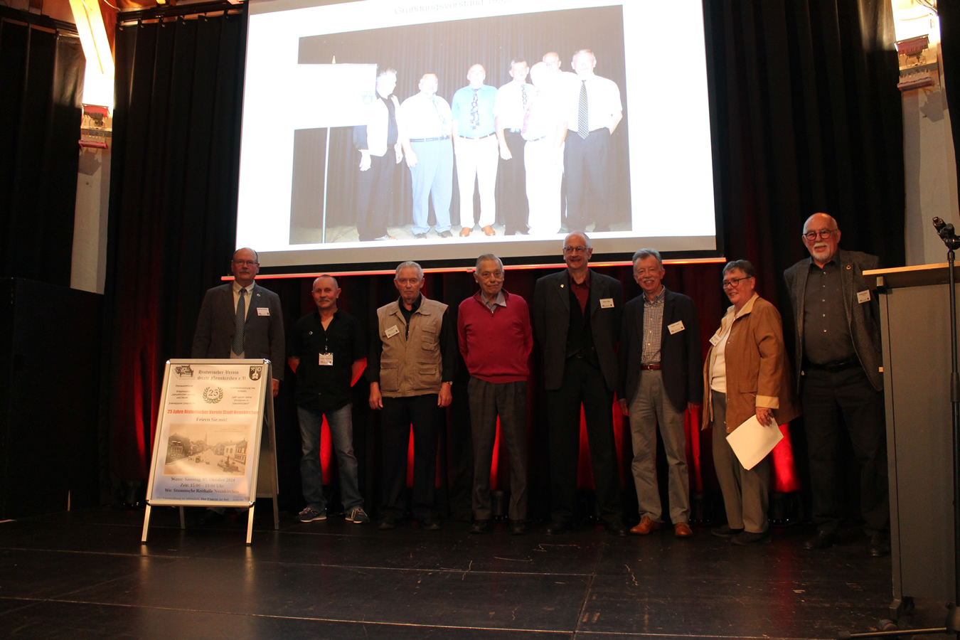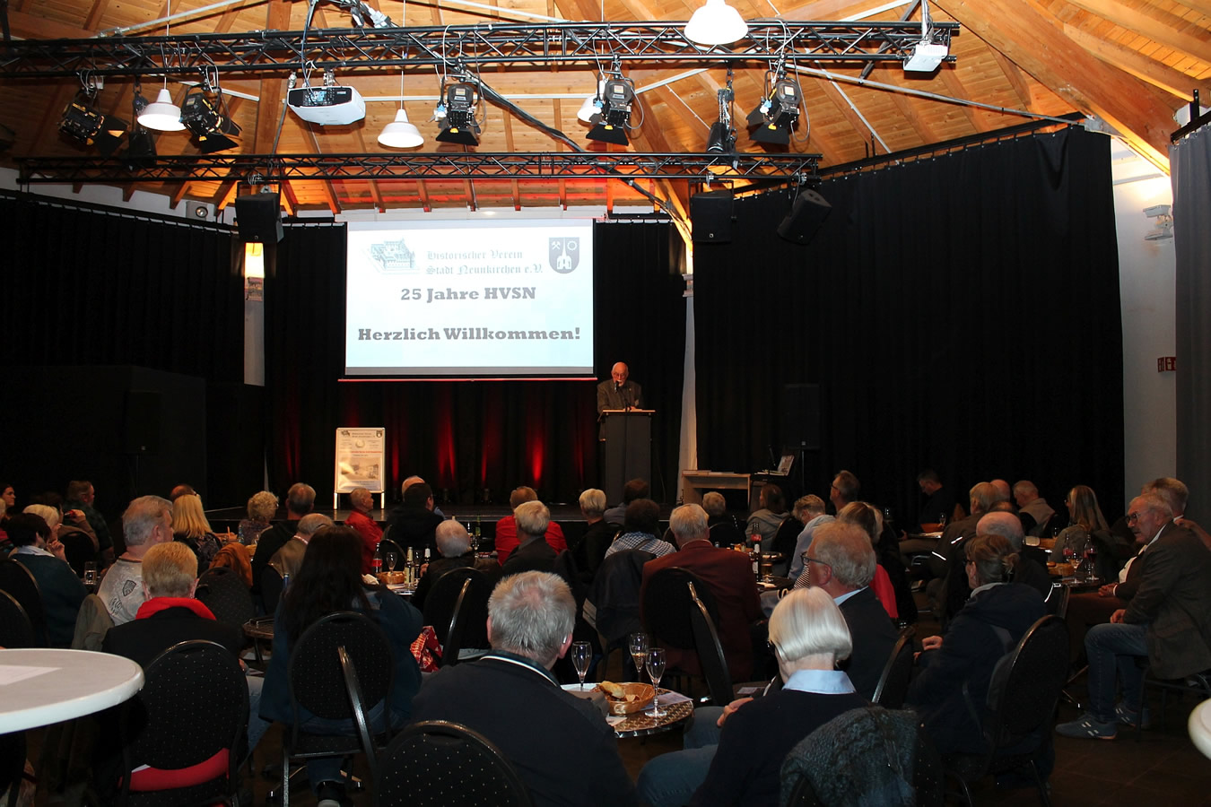 Proppenvoll und bis zum letzten Platz gefüllt war die Stummsche Reithalle in Neunkirchen als die Vorsitzende Marie-Luise Becker die Anwesenden begrüßte und der Präsident des HVSN, Friedrich Decker die Eröffnungsrede hielt, in der er einen Rückblick auf die vergangenen 25 Jahre gab. Mit dem Wunsch, dass sich in Zukunft mehr junge Menschen für die Geschichte Neunkirchens interessieren und dem Verein beitreten beendete Decker seine Rede.